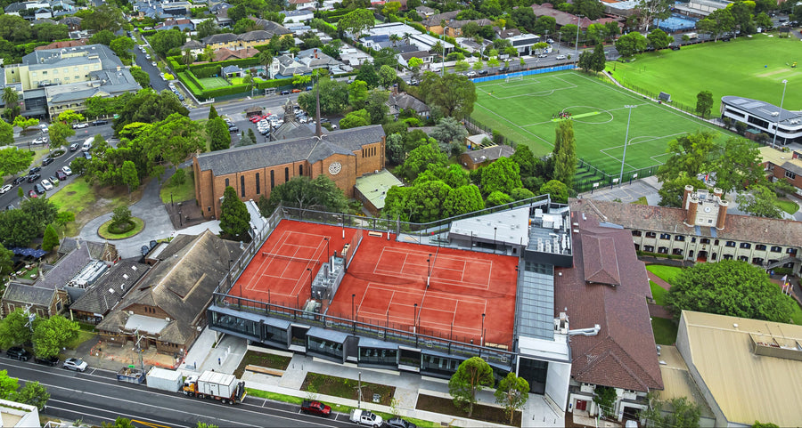 Setting a new benchmark in innovative sports facility design while continuing to offer amazing opportunities for their students, Brighton Grammar School has developed their latest building, the Duigan Centre, featuring three rooftop tennis courts.