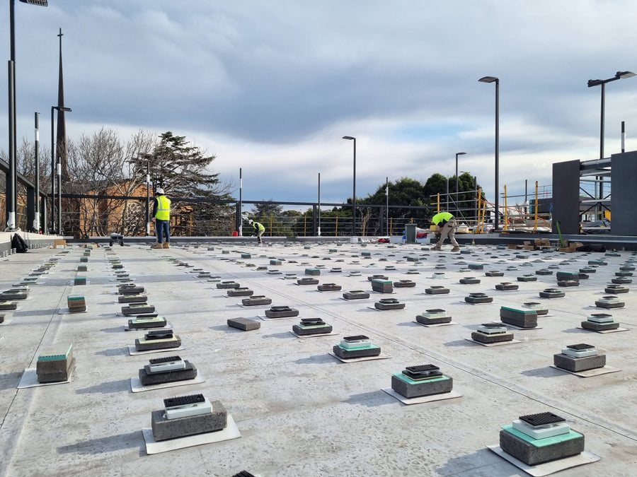Embelton designed, supplied and installed a floating floor to isolate the rooftop sports court from the below facilities, ensuring quiet and undisturbed classrooms below.